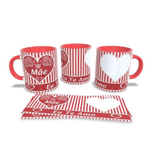 Caneca personalizada de porcelana de alto brilho, com interior e alça Vermelha com linda Estampa da Coleção dia das Mães.