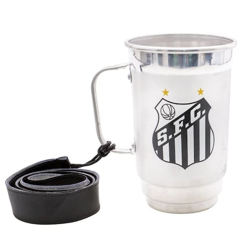 Altura: 14,5 cm Largura: 9 cm Capacidade: 700 ml Material: Alumínio e PU Conteúdo: 1 caneco de chopp e 1 tirante