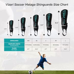 - Design criativo e durabilidade – O revestimento frontal Vizari Malaga Shin Guard protege suas canelas de chutes e é um escudo durável e de alta resistência que se encaixa automaticamente em sua perna. É um excelente protetor de treino para jogar sem hesitação ou restrição de movimento.