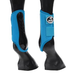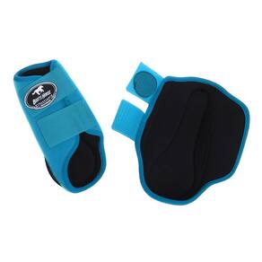Par de Combination Boots Rodeo West, fabricados em neoprene com fechamento em tira autocolante e reforço em vinil, é composto de boleteira em conjunto com o cloche formando apenas uma peça dando maior proteção para o animal. Utilizados nas patas dianteiras do animal.