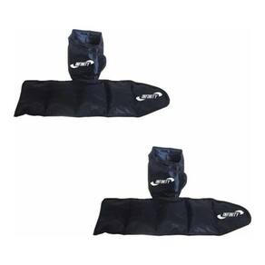 Cor: preto Lavável: sim Sistema de fechamento: tiras aderentes Outros: confortável ao tornozelo, não absorve suor, fácil de higienizar, possui costura reforçada evitando o vazamento do enchimento. Membros ou músculos trabalhados: coxas, abdômens, glúteos, panturrilhas e braços. Material: nylon reforçado Quantidade: 02 - caneleira de 3 kg 02 - caneleira de 5 kg