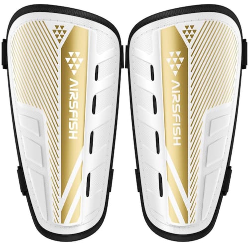 Airsfish A caneleira é projetada profissionalmente para proteção de jogadores de futebol infantis/jovens para treinamento ou partidas, certificado pela CE. O revestimento de PP forte combinado com a almofada EVA de alta resiliência tem um desempenho de alta resistência ao impacto para ajudar contra a força de alto impacto no jogo de futebol. A fivela dupla ajustável de fecho aderente adiciona mais estabilidade ao mesmo tempo, evitando que as caneleiras caiam de forma eficaz. Tiras de fecho aderente alongadas 3,5 cm para tornar o comprimento ajustável mais amplo. A borda de nylon do EVA alivia o atrito das pernas, melhorando a durabilidade. A camada interna de tecido de veludo respirável é mais agradável à pele e absorve o suor. Um presente perfeito para seus filhos. (Nota: a caneleira NÃO cobre toda a parte inferior da perna.) - ?Caneleiras com certificação CE?: projetado para proteção de jogadores de futebol infantis/jovens para treinamentos ou jogos, certificado pela CE. Revestimento de PP forte combinado com almofada de EVA de alta resiliência tem um desempenho de resistência de alto impacto para ajudar contra a força de alto impacto no jogo de futebol. (Patente pendente) - ?Ajuste perfeito e confortável?: A borda completa de nylon do EVA alivia o atrito nas pernas, melhorando a durabilidade. Além disso, o design de arco se ajusta muito às pernas e tem um bom efeito de proteção. - ?Camada interna de tecido de veludo respirável atualizado?: A camada interna de tecido de veludo respirável é mais agradável à pele e absorve o suor. O revestimento de PP reforçado leve oferece melhor ductilidade e tem um melhor efeito de proteção. - ?Fivela ajustável atualizada?: Duas tiras elásticas ajustáveis de fecho aderente fixam a canela para cima e para baixo. O gancho e a fivela dupla ajustáveis adicionam mais estabilidade ao mesmo tempo, evitando que as caneleiras caiam de forma eficaz. As tiras de fecho aderente alongam 3,6 cm para aumentar a faixa de comprimento ajustável. Seus filhos podem ajustar os comprimentos apropriados de acordo com o tamanho da perna. - ?Cuidado meticuloso para seus filhos?: Com as caneleiras de futebol AirsFish você não precisa se preocupar com seus filhos se machucando em seus jogos de futebol. Se você tiver alguma dúvida sobre esta caneleira, não hesite em entrar em contato conosco.