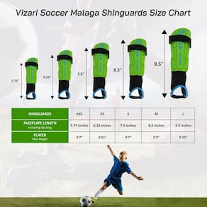 Vizari Caneleiras de futebol de Málaga para crianças e adultos – Caneleiras juvenis de futebol com proteção de tornozelo – Caneleiras de futebol leves com alças ajustáveis antiderrapantes para