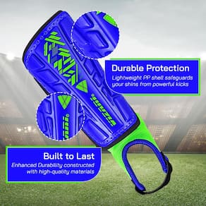 - Conforto: as caneleiras Vizari têm uma manga elástica confortável que se forma ao seu tornozelo e ajuda a manter essas caneleiras com segurança no lugar. O interior dos protetores de plástico rígido é acolchoado com espuma EVA que protege suas canelas e garante que essas caneleiras sejam confortáveis durante seus jogos.