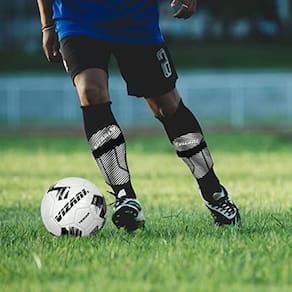Vizari Caneleiras de futebol Matera com alças ajustáveis para adultos e crianças - Preto/Branco, Pequeno, Leve e Durável Caneleiras de Futebol com Proteção no Tornozelo