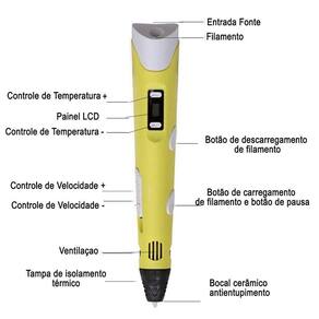 Possui painel LCD com mostrador para regulagem do tipo de material (pla ou abs) a ser e depois a Temperatura de