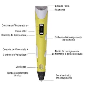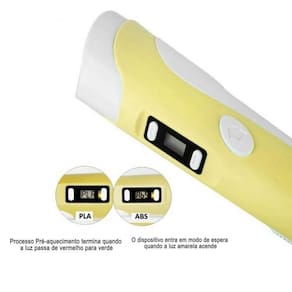 Possui painel LCD com mostrador para regulagem do tipo de material (pla ou abs) a ser e depois a Temperatura de uso