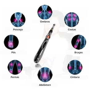 A caneta eletrônica de acupuntura funciona através de micro correntes, ou seja, funciona a partir de pequenos choques. Utilizando os princípios da acupuntura, a caneta faz a estimulação dos acupontos, a fim de alcançar vasos sanguíneos, tonificar os meridianos, estimulando os órgãos e eliminando a dor. Recomendada principalmente para combater: debilidade física, fadiga crônica, insônia, dor de cabeça, sistema imunológico comprometido, espondilose cervical, torácica e lombar, espasmo muscular, artrite, reumatoide e outras doenças ortopédicas, paralisia facial. Possui três funções principais:tipo dome: terapia superficial, que é aplicável para os cuidados de saúde e embelezamento facial;tipo de nó: terapia de nó, que é aplicável para dores de corpo parciais;esferoidal: parcial terapia, que é aplicável para aliviar rapidamente a dor. A acupen  meridian energy pen  é a maneira mais conveniente e eficiente de de realizar um tratamento de auto-aplicação de terapia de baixa voltagem  ou tbv . A tbv é comumente utilizada na mtc  medicina tradicional chinesa , as vezes no lugar ou em conjunto com a acupuntura. Esta caneta, pode ser utilizada nas seguintes categorias:- para localizar e estimular pontos e meridianos- como um aparelho tens- para alivio de dores musculares- para tratamento de estética e belezacaso queira aplicar em outra pessoa você precisa colocar a mão sobre a sua pele para que funcione. A função de localização de pontos é feito de uma maneira intuitiva, no qual você vai aplicando e quando atinge o acuponto ou meridiano, seu próprio corpo irá lhe avisar pois ira vibrar com os pulsos elétricos. A caneta não apita ou avisa quando esta sob o acuponto ,apenas dá um pequeno choque. Itens inclusos01 caneta de acupuntura com laser pulsante02 cabeças de contato02 potes para armazenar o gel a base de água01 manual