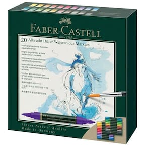 Um marcador de aquarela de artista é a definição moderna de pintura em aquarela: um instrumento de desenho de alta qualidade que suporta tanto esboços espontâneos quanto pinturas artísticas em aquarela. A tinta à base de água está sempre pronta para uso e também pode ser completamente lavada com água. A versatilidade deste marcador é especialmente convincente em viagens. Aqueles que gostam de guardar impressões enquanto estão em movimento ficarão encantados em poder recorrer a esta caneta.
