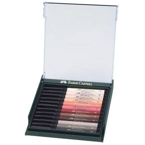 - O Estojo de Canetas Artísticas Pitt Ponta Pincel Cores Tons de Pele acompanha 12 Canetas Artísticas Pitt Ponta Pincel (B) nas cores Marfim (103), Pele Médio (116), Pele Claro (114), Carne Clara (132), Carne Média (131), Canela (189), Nougat (178), Vermelho Indiano (192), Sépia Escuro (175), Cinza Morno III (272), Cinza Morno IV (273) e Cinza Frio VI (235)
