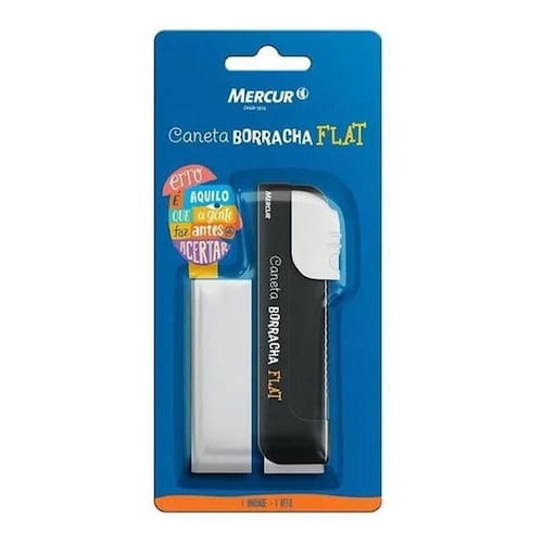 Indicada para apagar escrita a lápis, lapiseira e qualquer graduação de grafite, sem danificar o papel. Borracha suave e macia, resistente à dobra e não quebra com facilidade. Produto recarregável: refil vendido separadamente. Possui trava que impede o retorno da borracha. Marca Mercur Cor Branca Classe Material Escolar Capa Protetora Sim Tipo Caneta Modelo Fantasia Dimensões Aproximadas da Embalagem cm - A x L x P 18,0cm x 8,0cm x 1,0cm Peso aproximado da embalagem do produto Kg 0,05