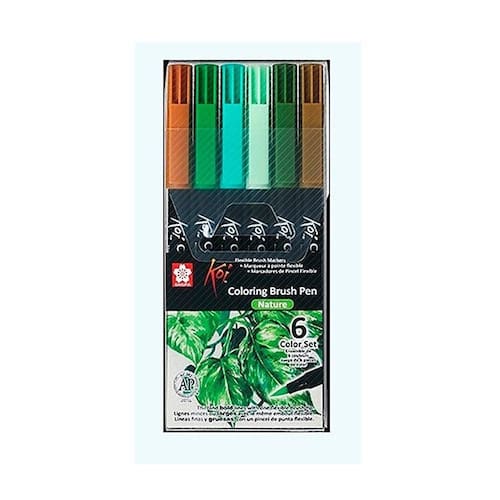 Caneta Brush Artistica Sakura Koi Coloring Nature 6 Cores Obtenha pinceladas finas, médias ou grossas mudando a pressão sobre a ponta. A ponta durável retorna rapidamente para a forma , traço após traço. - Indicado para artistias gráficos, designers, ilustradores, arquitetos e cartunistas - Fácil de combinar - Tinta a base de água - Contém 6 cores: 110 Dark Brown, 226 Emerald Green, 28 Blue Green Light, 128 Ice Green, 130 Sap Green, 47 Raw Umber Ean: 084511322196