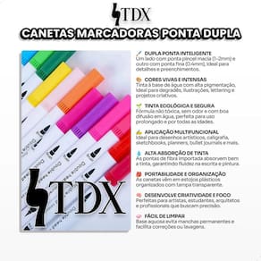 Perfeita para artistas, ilustradores, amadores e profissionais, a Caneta Brush Pen Kit com 36 Cores oferece versatilidade e qualidade superior em cada traço. Com pontas duplas fina e pincel , você cria desde detalhes precisos até efeitos de pincelagem, tudo em um único produto