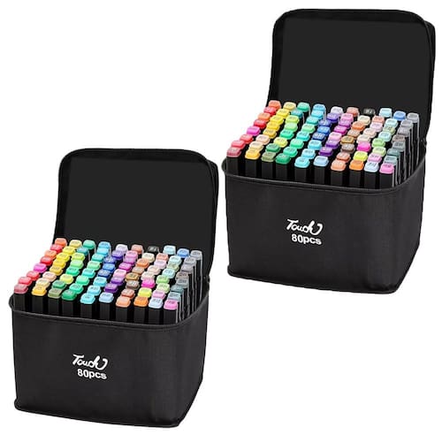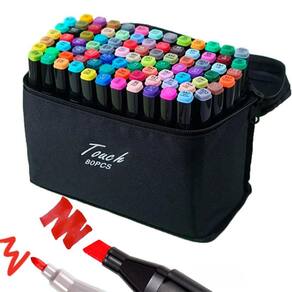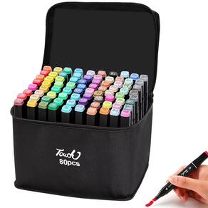 As canetas são de ponta dupla, duas pontas padrão, grossa e fina. Os marcadores são a base de álcool e não contém cheiro, ideal para crianças.