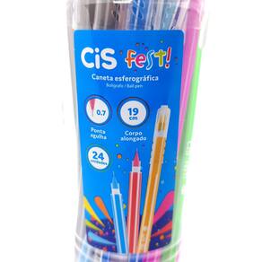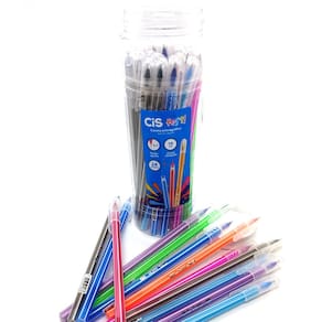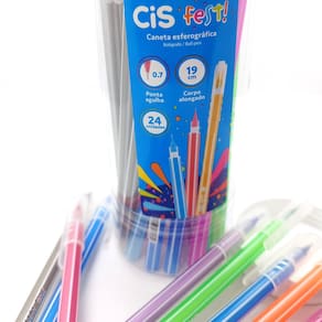 - Ponta agulha 0,7mm: traços finos e precisos para escrita clara e organizada. - Escrita suave: fluxo de tinta constante que garante conforto até em usos prolongados. - Corpo alongado de 19cm: design moderno com listras brancas e cor correspondente à tinta. - Praticidade no dia a dia: tampa protetora que evita ressecamento e mantém a durabilidade. - Kit completo: pote com 24 canetas esferográficas coloridas em cores diversas (com repetições). - Qualidade CiS: marca reconhecida pela inovação e variedade em materiais de escrita e papelaria.