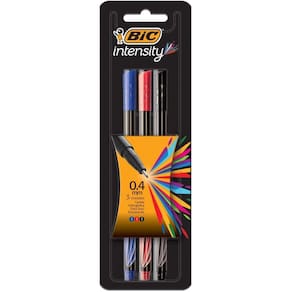 Caneta com ponta porosa intensity 0.4mm az+vm+pt Unidade: bl.C/03 Caneta ponta porosa bic instensity. Com uma linha de materiais da bic, você garante toda a qualidade necessária para realizar suas tarefas e trabalhos impecáveis. Cores fashions e escrita suave, tinta a base de água que desliza muito fácil, não borra e não marca a folha atrás, proporcionando praticidade e suavidade. Possui corpo arredondado, ponta 0.4mm deixando sua escrita mais precisa. Embalagem: 1 blister com 3 unidades com as cores: azul, vermelha e preta. Marca: Não Informado