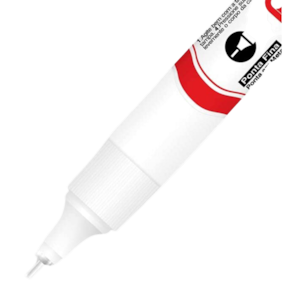 A caneta corretiva da Pentel possui ponta metálica fina, que facilita na correção de áreas pequenas, de maneira limpa e precisa, além de secagem muito rápida. T