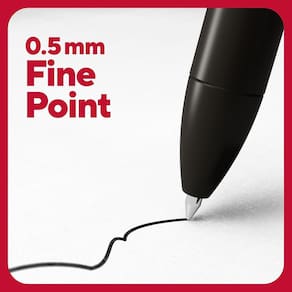 A caneta de tinta preta fluida fornece uma escrita o e vívida. A tinta avançada seca rapidamente para menos manchas. A ponta fina de 0,5 mm espalha a tinta perfeitamente. O barril colorido indica a cor da tinta. Clipe de bolso conveniente para prender a caneta em cadernos, bolsos e muito mais. O estilo retrátil conveniente evita a perda de tampas. Livre de ácido. Uma dúzia por pacote Escreva notas e textos sem manchas com este pacote de 12 canetas retráteis de gel preto TRU RED de secagem rápida. Desenhe e escreva com tinta preta nítida usando essas canetas retráteis de gel. 600 metros de vida útil de escrita permitem que grandes cargas de trabalho sejam concluídas entre as substituições. A tinta avançada seca totalmente em 2 segundos, criando uma caneta ideal para uso com a mão esquerda ou direita. Cada caneta neste pacote de 12 canetas de gel de secagem rápida retráteis pretas TRU RED apresenta um clipe prático para caber no papel ou no bolso.