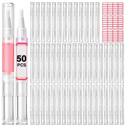 recipientes de base líquida, tubo líquido para crescimento de cílios, canetas giratórias transparentes, caneta de óleo de cutícula recarregável, frascos de esmalte vazios com pincel, aplicadores labiais, óleo de cutícula de viagem, rolo de óleo de cutícula -?Caneta de óleo de cutícula suficiente?- Você receberá 50 peças de caneta de óleo de unha vazia, 3 folhas de 72 etiquetas adesivas para diferenciação. É uma quantidade suficiente para atender às suas diferentes finalidades, uso diário, substituição, viagem ou compartilhamento com seus familiares ou amigos, etc. -?À PROVA DE VAZAMENTOS E PORTÁTIL?- Nossa caneta de óleo para cutículas com tampa selada garante excelente proteção contra vazamentos. As canetas giratórias vazias são leves e portáteis, cada tubo pode conter aproximadamente 3 ml. O tamanho dos tubos de brilho labial é de 4,96 polegadas x 0,48 polegadas, tamanho adequado e leve, portátil para viagens e viagens de negócios. Fácil de classificar e identificar cada caneta de óleo de cutícula com adesivos de rotulagem. -?MATERIAL DE ALTA QUALIDADE?- Essas canetas giratórias transparentes são feitas de material PP de alta qualidade. Eles são descartáveis, higiênicos e não tóxicos, com um design claro para facilitar a identificação do conteúdo. A ponta macia do pincel é perfeita para aplicar nos lábios ou unhas, garantindo uma cobertura uniforme. -?FÁCIL DE USAR?- Basta injetar o líquido na caneta de óleo de cutícula, instalar a ponta branca do pincel e girar a caneta no sentido horário até que o líquido saia. Lembre-se de cobrir a tampa da caneta após o uso. DICAS!!! Por favor, NÃO encha demais a caneta de óleo para unhas, para deixar bastante espaço para a escova superior pressionar. Pressione com firmeza para selar a caneta. NÃO torça a caneta vazia até o topo, ela não conseguiria girar para trás. Por favor, não tente torcer para trás, pois isso danificará a engrenagem interna. A caneta de óleo é descartável. -?AMPLA APLICAÇÃO?- Essas canetas com ponta de pincel são adequadas para líquidos finos ou espessos, como brilho labial, óleo nutritivo para unhas, creme para crescimento de cílios, óleo essencial, clareamento de dentes, bases, soros, tratamento para manchas de acne, etc.; também pode ser usada como pincel. (Não é adequado para encher líquido ácido alcalino ou com maior concentração de álcool.)