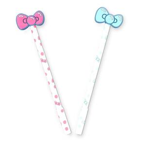 - INCLUI: conjunto de duas (2) canetas — azul e rosa — cada uma com um lindo tema de laço e chapéu de cabeça da Hello Kitty!