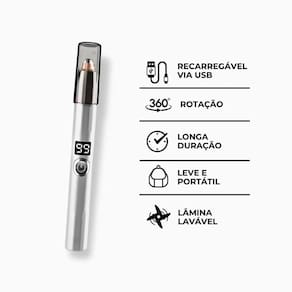 Mantenha suas sobrancelhas sempre bem definidas com o Depilador de Sobrancelha Elétrico com Display Digital LED, uma solução moderna e eficiente para depilação prática, indolor e segura. Com design compacto em formato de caneta, este depilador é ideal para uso diário ou em viagens, oferecendo um acabamento impecável em sobrancelhas, buço e narinas.