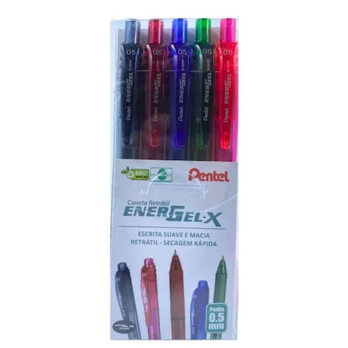 Caneta Energel X 0.5mm ou 0.7mm C/5 Cores PENTEL