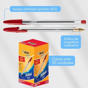 Caneta Esf.Cristal Preta Cx50 Bic 1101072 Bic Cristal - Cor: Vermelha