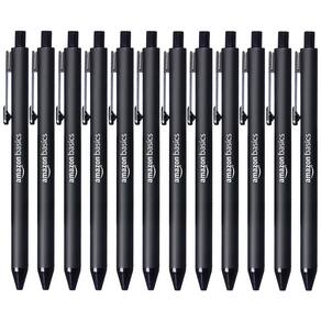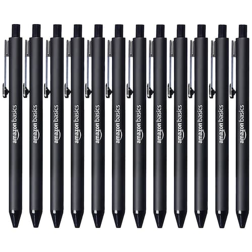 Caneta esferográfica retrátil Amazon Basics — preta, de ponta média, escrita suave, alça macia, 1,2 mm, pacote com 12