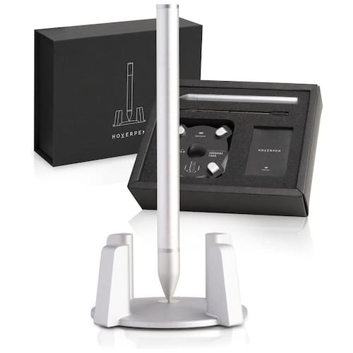 Atreva se a desafiar a gravidade. Conheça o Hoverpen, uma caneta de auto equilíbrio com estética impressionante e movimento hipnotizante. Esta caneta inovadora eleva qualquer espaço de mesa, transformando o desinteressante em fascinante. Design Moderno Premium. Com suas linhas limpas e estilo minimalista, o Hoverpen é adequado para qualquer executivo. Fabricado em alumínio ou titânio, obtenha durabilidade ao longo da vida com uma aderência extraordinária. Mais do que apenas para escrever. Entretenha suas necessidades de inquietação com a tampa totalmente magnética do Hoverpen. Coloque o e tire o para se divertir, ou veja o girar no suporte para aumentar a criatividade e o foco. Tinta de fluxo livre à prova dágua. Experimente a escrita fácil de deslizar todos os dias com nossa tinta de arquivo que não sangra e dura a vida inteira. As recargas também são fáceis com o design de recarga rápida do cartucho de caneta Marca: Não Informado
