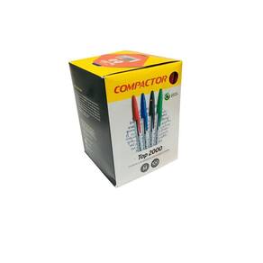 Caneta esferográfica compactor - vermelho - top200 Características do produto: Corpo arrendondado Ponta 1 mm Atóxico. Composição: resina termoplástica, ponta de latão e e de tungstênio. Descrição: Cor: vermelho Altura: 146mm. Diâmetro: 8mm. Marca: jocar office Caixa: com 50 unidades Marca: Não Informado