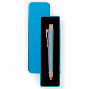 Estojo Poly Urban Azul Gold em lata com caneta esferográfica retrátil com traço médio de 1.0mm para escrita super macia.