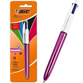 A caneta esferográfica BIC 4 Cores é um ícone de mercado! Muito prática: com apenas um clique no botão você seleciona a cor que deseja - azul, preto, vermelho ou verde. Possui corpo metálico, que traz um ar moderno e atraente para essa tradiconal caneta da BIC. Ponta média de 1 mm - largura da linha 0,4 mm. Qualidade e eficiência, não trava durante o uso e escreve de 2 a 3km. Com a linha de materiais da BIC você garante toda a qualidade necessária para realizar suas tarefas diárias e trabalhos impecáveis.