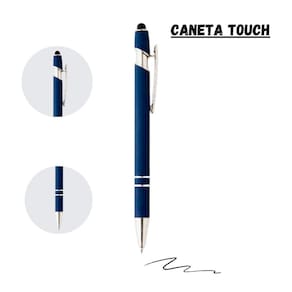 Caneta esferográfica touch kit com 10 unidades 5 cores-luxo Cor: azul Bem vindo a nossa loja A lualki store tem os melhores produtos para seu uso. Se atentamos para total satisfação do cliente. Caneta metálica touchscreen sem gravação A caneta touch esferográfica 2 em 1 é perfeita para quem busca praticidade no dia a dia com um design elegante e funcional, ela combina a escrita suave de uma caneta esferográfica de ponta fina com a versatilidade de uma ponta touch, ideal para telas sensíveis de smartphones, tablets e outros dispositivos. Caneta metálica touchscreen com acabamento à borracha, acionamento por clique e carga esferográfica azul 1.0mm. Largura:1,10 Altura:13,90 Medidas aproximadas para gravação cxl :0,7 cm x 3,5 cm Peso aproximada:18 g Marca: Não Informado Ean: 7894562247170