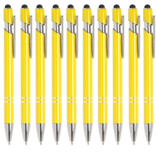 Caneta esferográfica touch kit com 10 unidades 5 cores-luxo Cor: amarelo Bem vindo a nossa loja A lualki store tem os melhores produtos para seu uso. Se atentamos para total satisfação do cliente. Caneta metálica touchscreen sem gravação A caneta touch esferográfica 2 em 1 é perfeita para quem busca praticidade no dia a dia com um design elegante e funcional, ela combina a escrita suave de uma caneta esferográfica de ponta fina com a versatilidade de uma ponta touch, ideal para telas sensíveis de smartphones, tablets e outros dispositivos. Caneta metálica touchscreen com acabamento à borracha, acionamento por clique e carga esferográfica azul 1.0mm. Largura:1,10 Altura:13,90 Medidas aproximadas para gravação cxl :0,7 cm x 3,5 cm Peso aproximada:18 g Marca: Não Informado