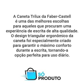 Em resumo, a caneta trilux da faber-castell é mais do que uma simples caneta. Ela combina ergonomia, conforto, durabilidade e alta qualidade de escrita em um único instrumento. Se você quer uma caneta que faça a diferença em sua rotina de escrita, a caneta trilux da faber-castell é a escolha certa para você