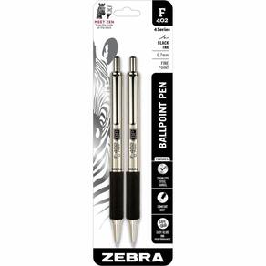 Zebra Caneta esferográfica retrátil F-402, barril de aço inoxidável, ponta fina, 0,7 mm, tinta preta, pacote com 2 - A caneta esferográfica retrátil de ponta fina de 0,7 mm possui um cilindro contemporâneo de aço inoxidável pesado que resiste à corrosão e é mais fácil de higienizar do que o plástico - A tinta de deslizamento fácil traz o melhor desempenho de escrita para suas necessidades diárias, como anotações, assinatura de documentos, preenchimento de formulários e listas - O barril de aço inoxidável leve e durável oferece uma aparência moderna e atraente com uma aderência emborrachada confortável para combinar com a tinta interna - O clipe de metal conveniente torna estes instrumentos uma opção fantástica de pegar e levar, fixando-se ao seu bolso, agenda ou bolso da pasta - Este pacote com 2 canetas esferográficas resistentes é recarregável com Zebra Pen F-Refill; Construído para salas de reuniões, tribunais, ambientes médicos e uso pessoal, o F-402 adiciona estilo pessoal ao seu trabalho