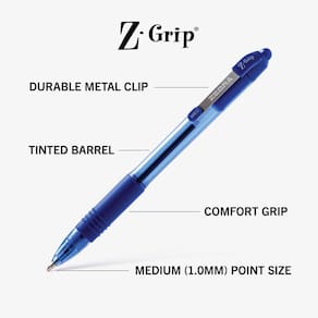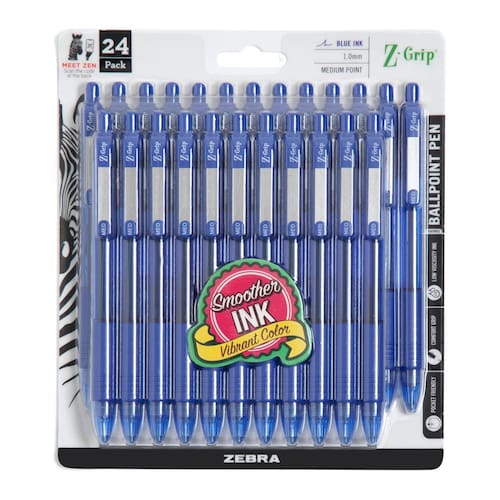 Zebra Caneta esferográfica retrátil Z-Grip, ponta média, tinta azul, pacote com 24, número do modelo: 12225 - Caneta esferográfica de ponta média de 1,0 mm para uso diário, uso pesado com tinta azul de baixa viscosidade para uma experiência de escrita suave e sem interrupções e velocidades de escrita mais rápidas - Alojado em um elegante barril de plástico com uma aderência emborrachada macia e sem látex que oferece maior conforto para escrita contínua e uma melhor aderência para tomar notas rápidas - Possui um clipe de bolso de metal conveniente para acesso rápido e fácil transporte. Prenda-o à sua prancheta, pasta ou pasta para garantir que você nunca perca sua caneta favorita novamente - A tinta azul ousada combinada com a construção de caneta sólida tornam esta caneta esferográfica de alto desempenho a escolha perfeita para sua casa, escola, espaço de trabalho, pequena empresa ou escritório tradicional - O conjunto de canetas inclui 24 canetas esferográficas não recarregáveis que oferecem valor, desempenho, conforto e estilo para que você possa fazer o trabalho certo todas as vezes