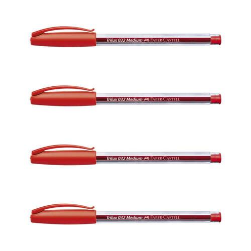 Kit com 04 cor Vermelha da Caneta Esferográfica Faber-Castell Trilux Colors 1.0mm