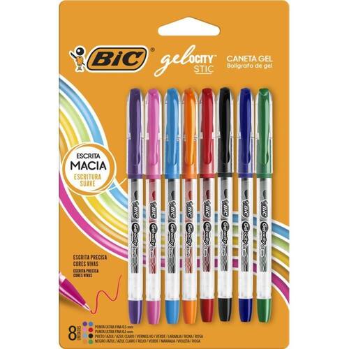 BIC, Caneta em Gel, Gelocity, Ponta Fina, 8 Cores Dispõe de cores vivas, com uma escrita confortável e macia. Conta com ponta fina de 0,5 mm para você obter maior precisão, além de oferecer desempenho confiável para uma variedade de tipos de escrita. Cores: preto, azul, azul-claro, vermelho, verde, laranja, roxo e rosa; 8 unidades; Ponta fina de 0,5 mm; Caneta em Gel; Qualidade BIC. Marca: Não Informado