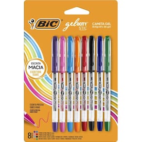 BIC, Caneta em Gel, Gelocity, Ponta Fina, 8 Cores Dispõe de cores vivas, com uma escrita confortável e macia. Conta com ponta fina de 0,5 mm para você obter maior precisão, além de oferecer desempenho confiável para uma variedade de tipos de escrita. Cores: preto, azul, azul-claro, vermelho, verde, laranja, roxo e rosa; 8 unidades; Ponta fina de 0,5 mm; Caneta em Gel; Qualidade BIC. Marca: Não Informado