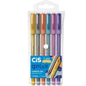 A Caneta Gel Cis Gelyx Metálica 1,0mm 6 Cores é a opção perfeita para quem busca qualidade e praticidade na hora de escrever e desenhar. Com a sua tinta gel em cores metálicas, essa caneta proporciona um acabamento brilhante e elegante em cada traço.