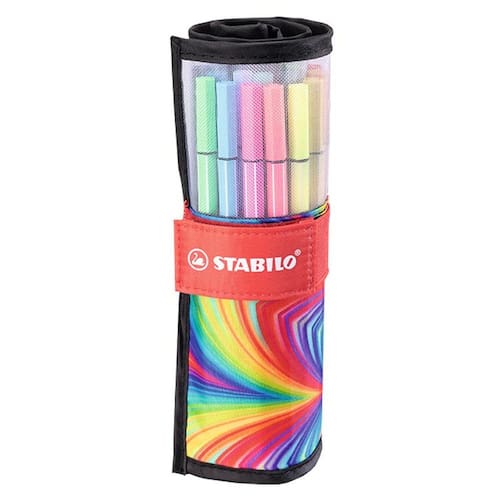 Caneta hidrográfica Pen 68 6825 - estojo 25 unidades - Stabilo Detalhes - Inodoro. - Corpo sextavado em plástico rígido. - Tampa ventilada. - Tinta à base de água. - Longa duração