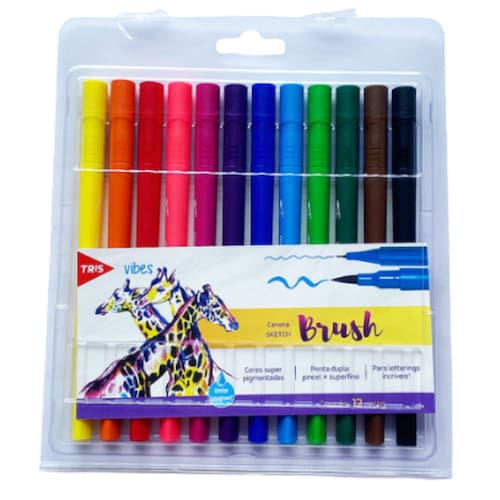 Hidrocor de ponta dupla: ponta superfina de traço 0.4mm, ideal para detalhes; e ponta pincel de 4,4mm, ideal para handlettering!