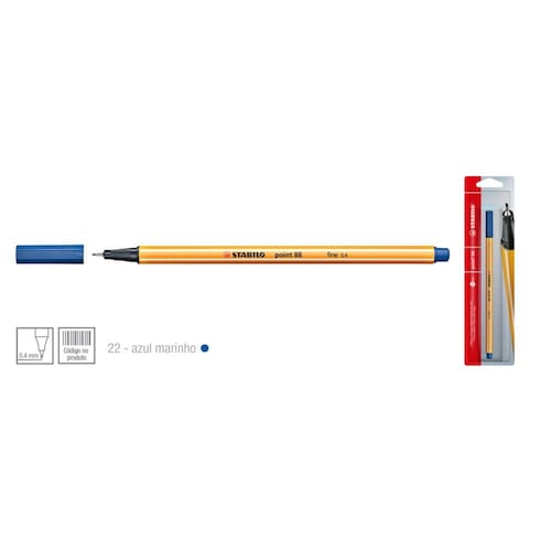 Caneta hidrográfica multiuso extrafina, ponta 0.4mm, Coloraçãopo sextavado em plástico rígido tinta a base de água de longa duração, tampa ventilada na Coloração da tinta point 88/22 0.4mm - azul marinho - blister com 1 unidade. Marca:Stabilo Conteúdo da embalagem:Caneta Hidrográfica Dimensões:3x20x34Cm Coloração:Azul Marinho