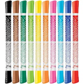 Uma ampla variedade de canetas para escrever e desenhar em cor tudo o que lhe apetecer Especificações Ponta dupla em formato cônico para diferentes traços Ponta fina de 2 mm: para detalhes finos Ponta larga de 3,9 mm: para cobrir as superfícies e pintar Tinta ultralavável Alto poder de cobertura: 300 m de pintura Estojo com 10 canetas Caneta com tampa ventilada e corpo decorado Ean: 3154148490104