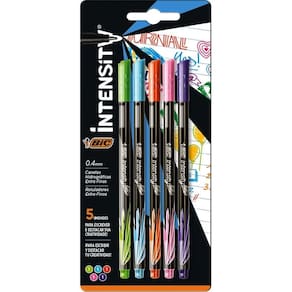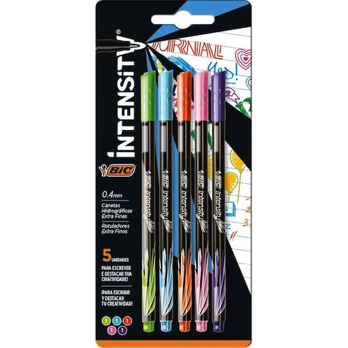 Caneta Hidrográfica Extra Fina Intensity Ponta 0,4mm 5 Cores 500168 Caneta Hidrográfica Extra Fina Intensity Ponta 0,4mm 5 Cores 500168 Caneta Hidrografica Ultra fina 0,4mm BIC Intensity com tinta à base de água que não marca a folha de trás A Intensity é definida pela BIC como canetas premium com ponta de feltro ultrafina de 0,4 mm, o que garante Um desempenho inigualável tanto na escrita, com cores vivas para destacar pontos importantes do texto, Quanto em projetos manuais e lettering, modalidade que mescla arte, design e diferentes tipografias, Oferecendo um acabamento diferenciado e cores vibrantes Seu design colorido vai alegrar o seu dia-a-dia Use e abuse da sua criatividade Diferenciadores Ponta ultra fina 0,4mm: mais precisão Corpo arredondado Tinta à base se água que não borra e não marca a folha de trás Blister com 3 cores clássicas Escrita macia Especificações Cor: Azul, verde, vermelha, rosa, roxo Indicações: Para escrever Volume: Blister 3 unidades Embalagem Caneta Hidrográfica Extra Fina Intensity Ponta 0,4mm 5 Cores 500168 12 Meses Marca: Não Informado