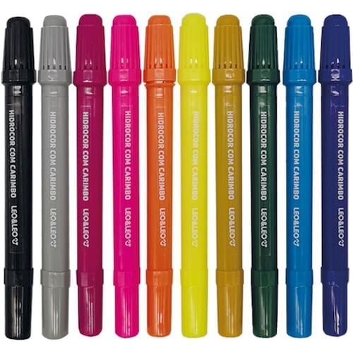 Caneta hidrografica hidrocor 10cores c/carimbo Unidade: estojo O kit de hidrocores com carimbo traz otimas tonalidades para colorir sua imaginacao. Sao 10 cores vibrantes e 10 estampas incriveis para criar efeitos repletos de personalidade. Agora e so usar sua criatividade para criar desenhos e artes incriveis. Marca: Não Informado