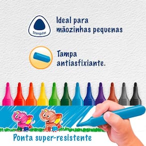 - Jumbo triangular: formato ergonômico ideal para mãozinhas pequenas.