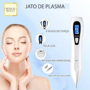 o plasma é um gás ionizado com íons e elétrons e ao ser aquecido e em contato com o oxigênio produz o plasma. Deste modo, esse emissor de ondas elétricas de corrente alternada ou contínua atinge somente o estrato córneo do tecido epidérmico, não causando danos às camadas inferiores, folículos pilosos e outras estruturas. Na área da estética trata, também, as telangiectasias. Trocando-se a ponteira e a intensidade do estímulo. Assim também, serve para blefaroplastia não-invasiva, eliminação de verrugas, entre outros. Por fim, proporciona aumento da produção de colágeno do tipo 1, quimiotaxia, liberação de fatores de crescimento e restabelecimento da bioeletricidade celular. Atualmente, muito tem se falado sobre eletroterapias e rejuvenescimento facial. Neste intuito, o eletrocautério e jato de plasma são as mais conhecidas. O tratamento com o jato de plasma garante resultados visíveis imediatamente após a aplicação mantendose no longo prazo. O aparelho pode ser utilizado para tratamentos corporais e faciais, remoção de manchas, pintas, sardas, verrugas, tatuagens, para redução de rugas, cicatrização de acne, peeling profundo, pálpebra caída, restauração do tecido conectivo e problemas de pigmentação. O dispositivo também é capaz de incorporar ingredientes ativos nas camadas profundas da pele, para a normalização dos tecidos conectivos, melhorar a elasticidade da pele e restaurar a microcirculação na pele. Características: