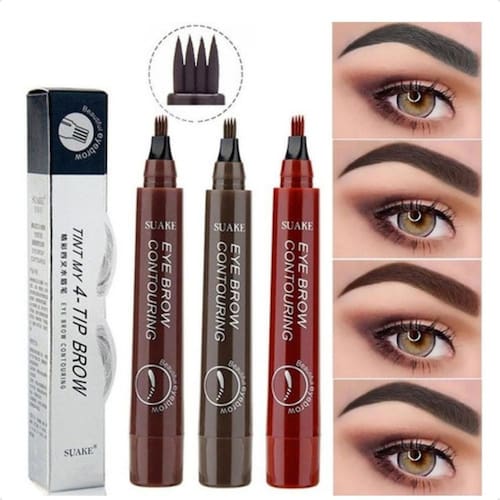Tipo: lápis de sobrancelha líquido Lápis de sobrancelha duradouro, tatuagem indolor; Cor: Marrom claro, preto,Marrom Escuro,cinza; Peso líquido: 5g; Características: durável e impermeável; Design especial dos dentes de 4 cabeças, sobrancelhas com contornos requintados;